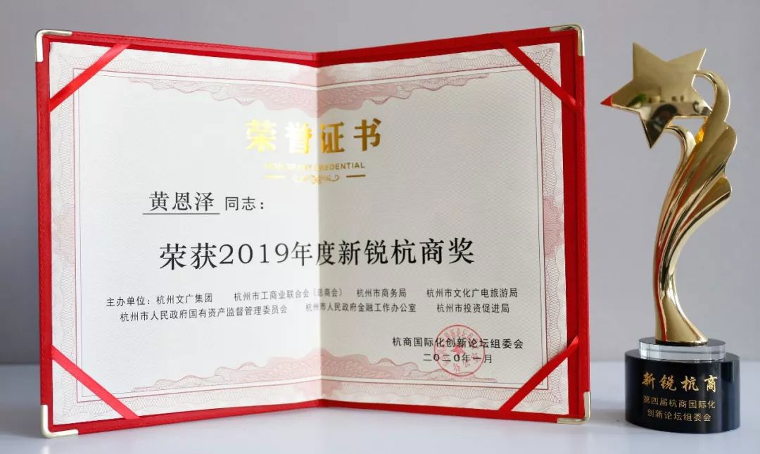 三替集團總經理黃恩澤榮獲“2019年度新銳杭商獎”